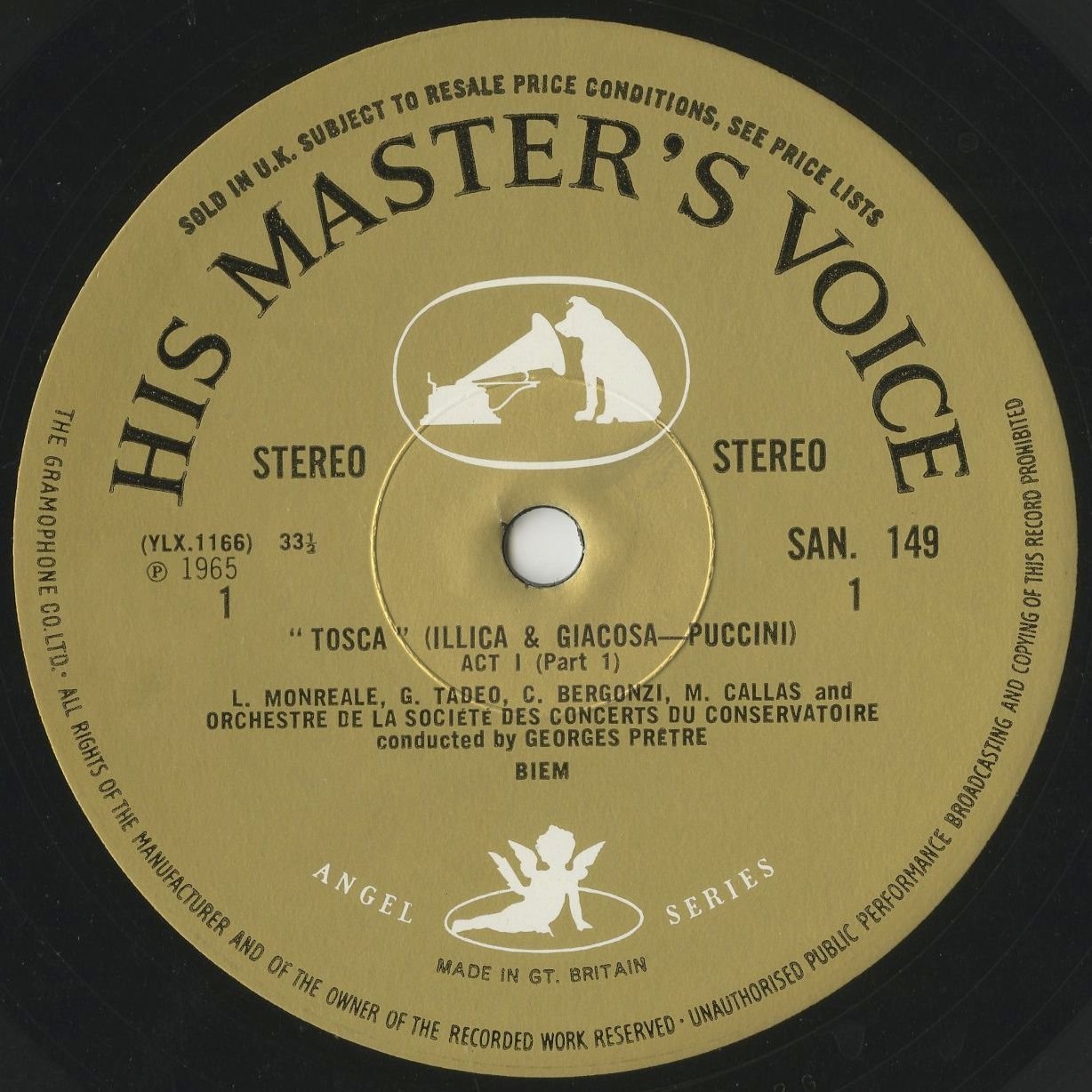 ホワイトエンジェル★マリア・カラスのステレオ録音◉プレートル指揮パリ管 プッチーニ:歌劇《トスカ》全曲 – HMV SAN 149-150