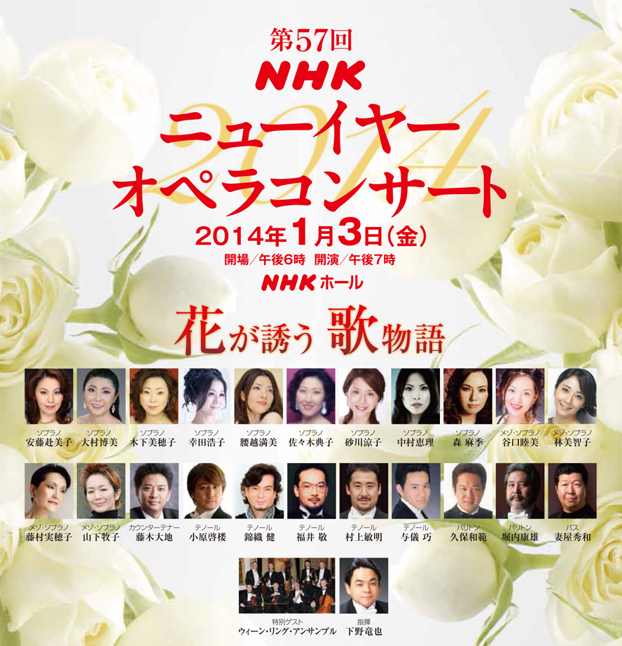 NHKホールから生放送でお送りする、新春恒例のニューイヤーオペラコンサート。